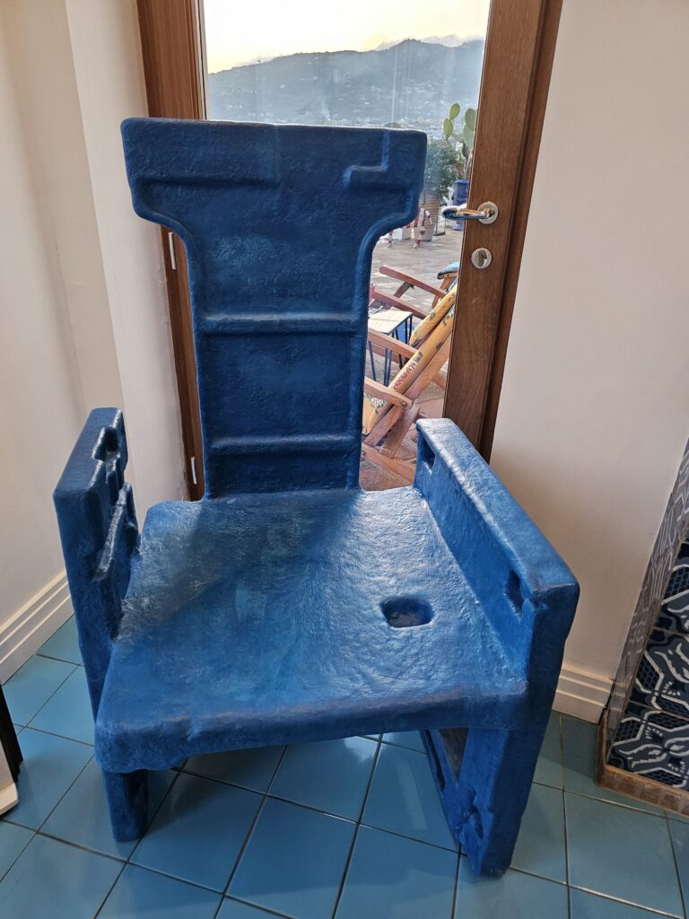 From here I can see an emerging Vesuvius. The furniture is still too dewy to sit on so I’m on an oversized plastic blue chair just inside the doorway. It’s more of ` sculpture than a chair. This hotel is a design marvel. It is like living in an art gallery. Wonderful. Unfortunately the next time we come, in May, we are downgrading to the Hilton as it is the venue of the conference I am organising.. Don’t get me wrong. The Sorrento Hilton is a nice hotel but it isn’t La Minervetta.