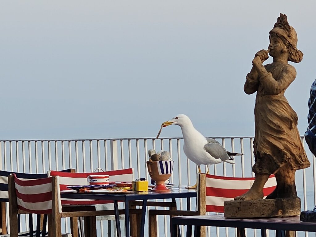 At six o’clock in the morning sorrento is already getting noisy. Some sort of machinery has just started up. Can’t see what it is but imagine a road sweeper making its way towards you getting louder by the minute. Or some sort of powered saw. Reminds me of the man sanding the decking of his outside restaurant furniture. We passed him on Monday and he was still at it the next day. Getting ready for the busy season ahead. Lots of noises coming now from the harbour. Beeping sounds of a reversing truck. A scaffold being dropped. A man’s voice calls out, the Italian for woah. Twice.